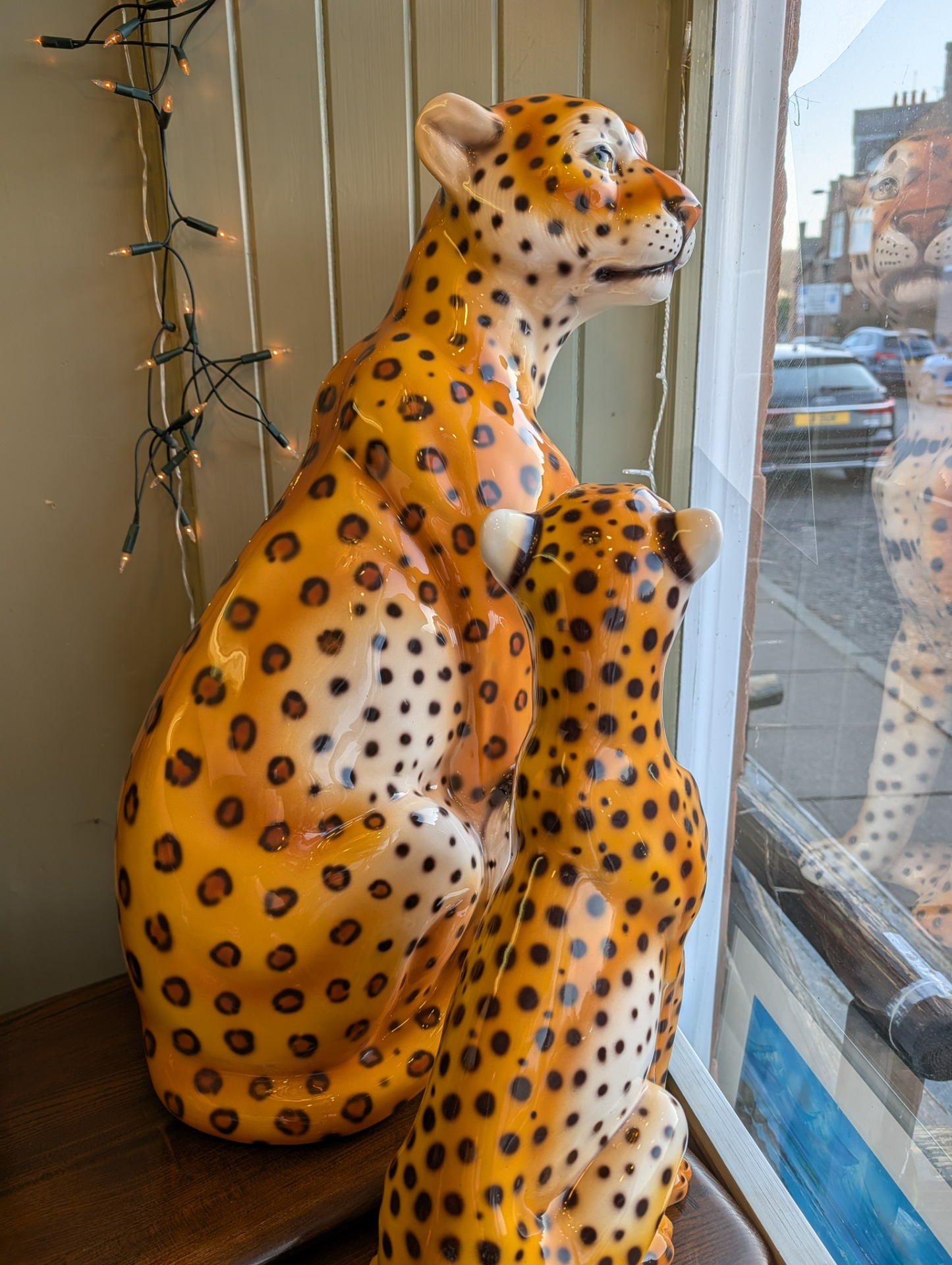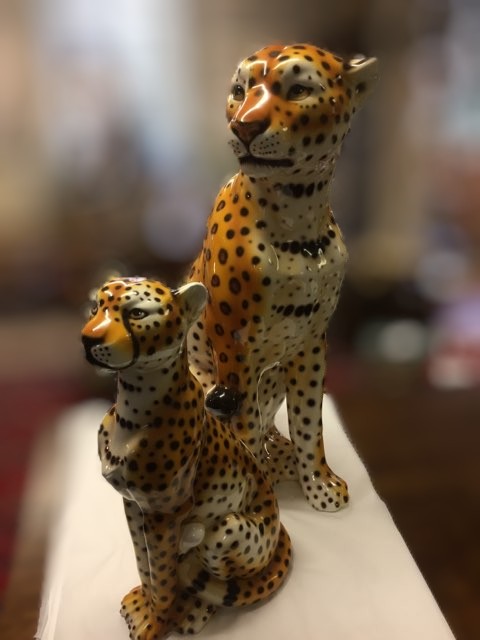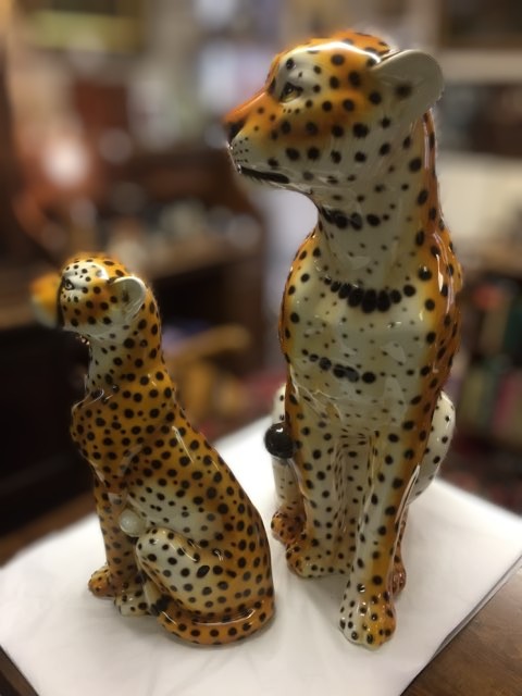 1970s handmade Italian Cheetah and cub by Carrano, perfect condition and becoming very rare to find both together.