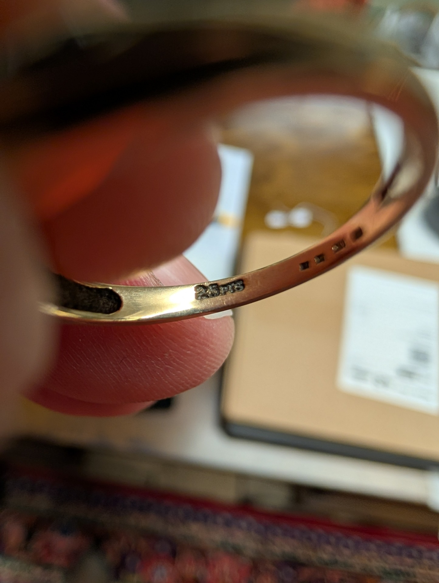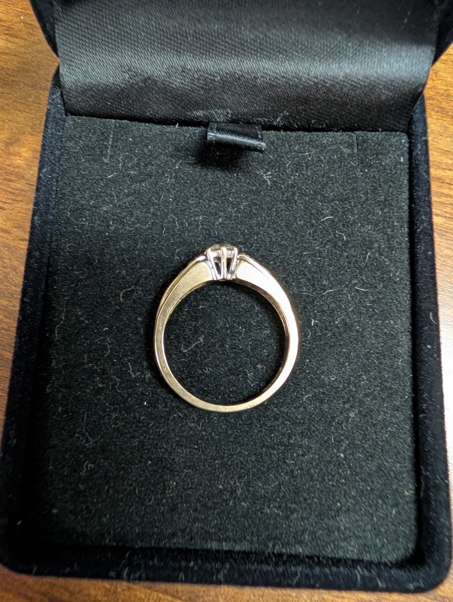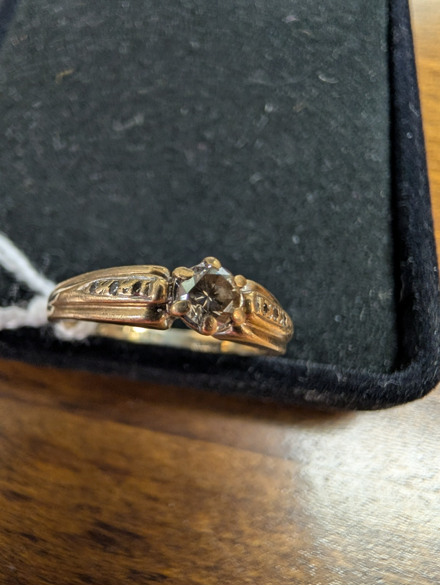 A 9ct gold Diamond ring with smaller stones to the shoulders.