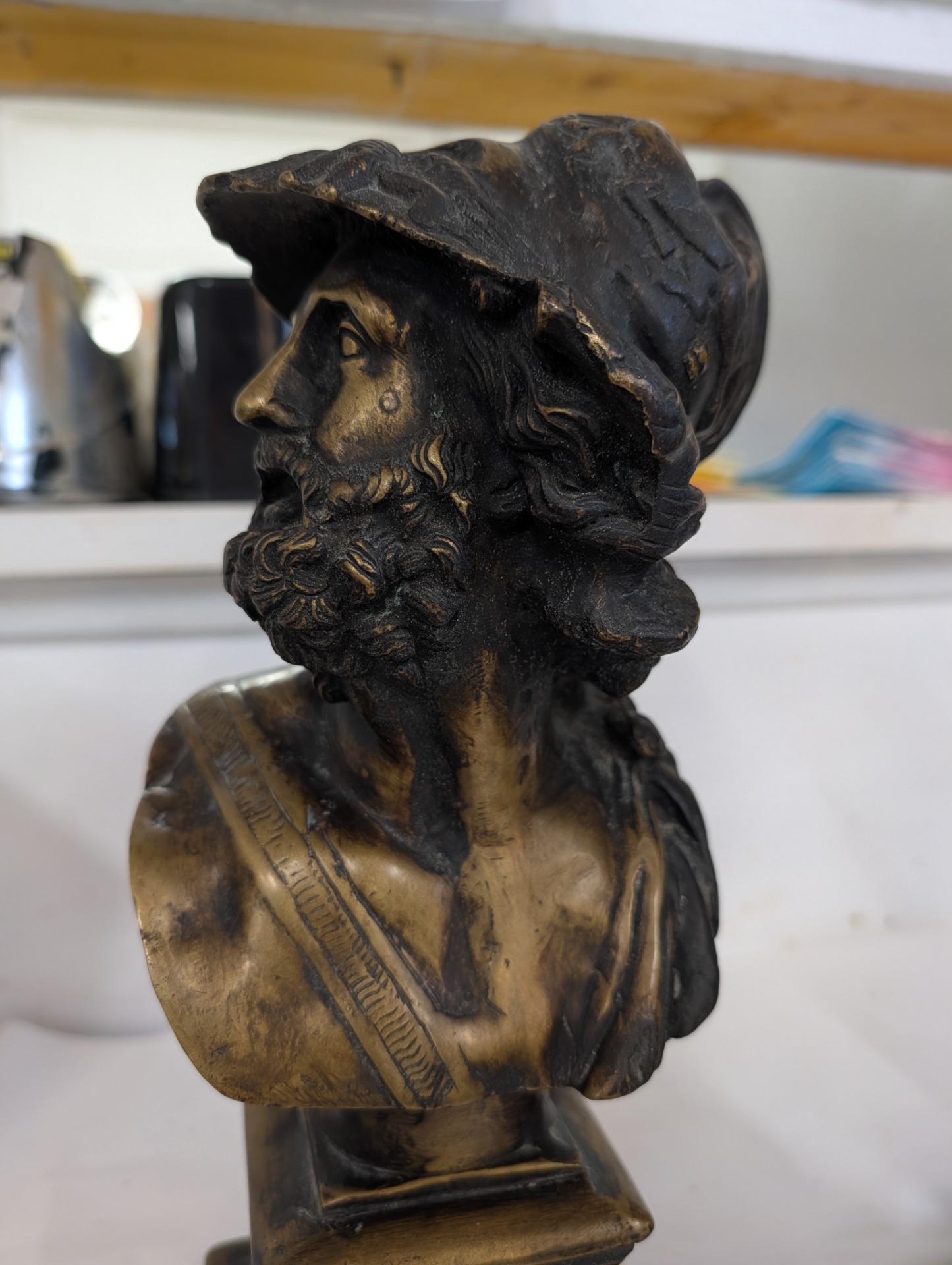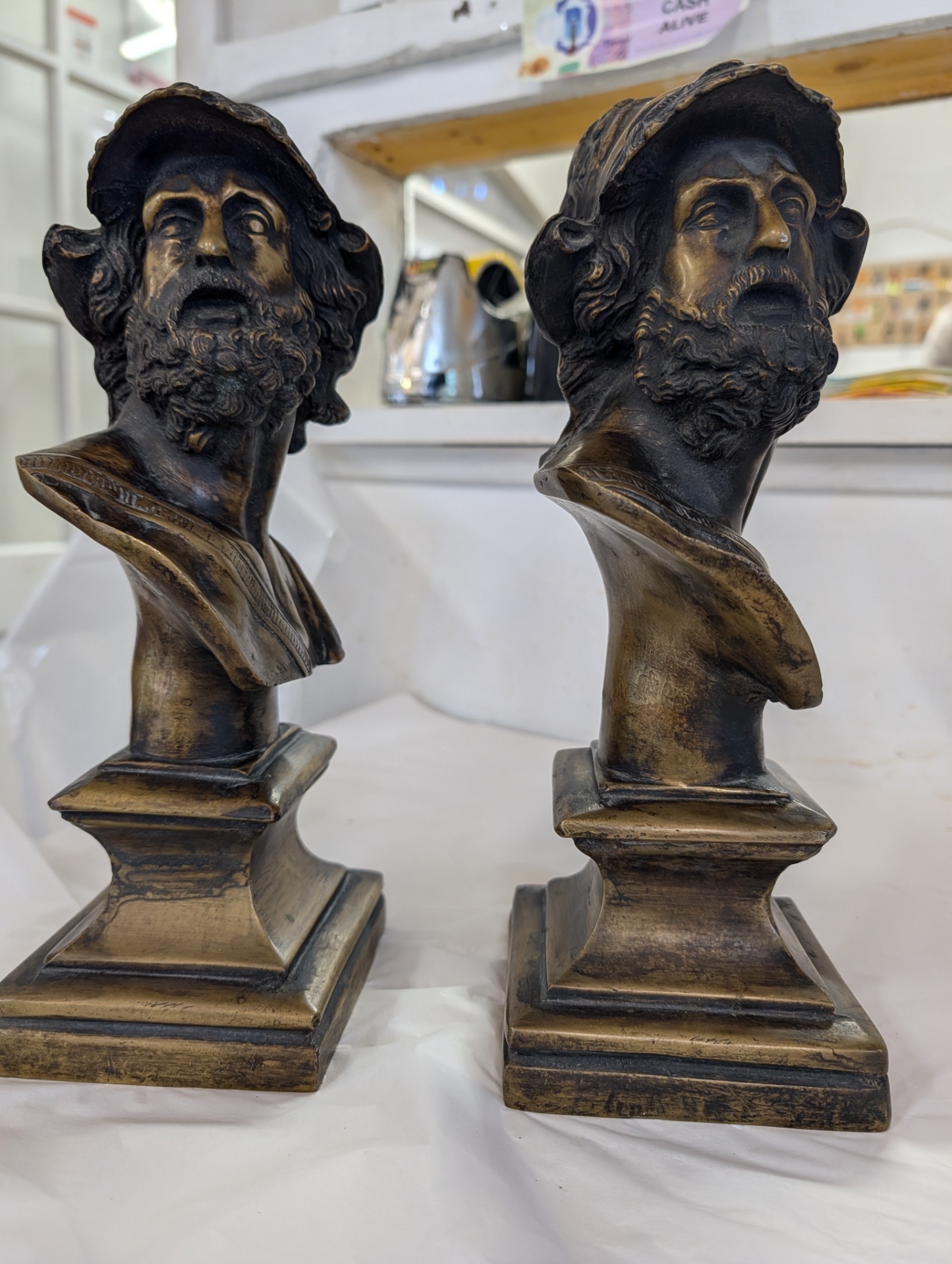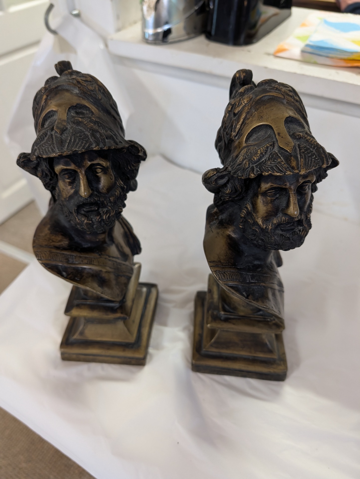 A rare find, a pair of Grand tour Ajax the Great solid cast bronze busts. Possibly French, and dating to the Victorian period these are a fabulous pair, finely detailed and 12" in hight.