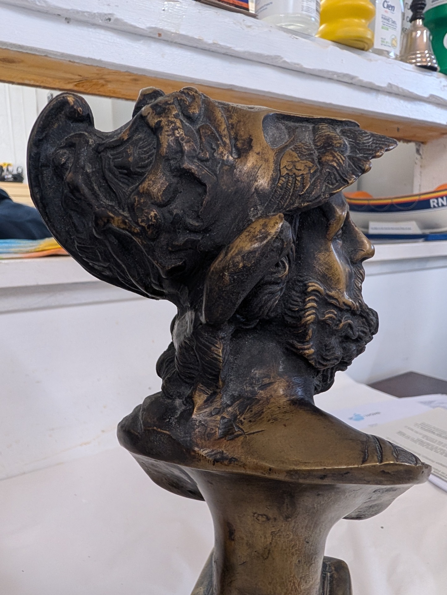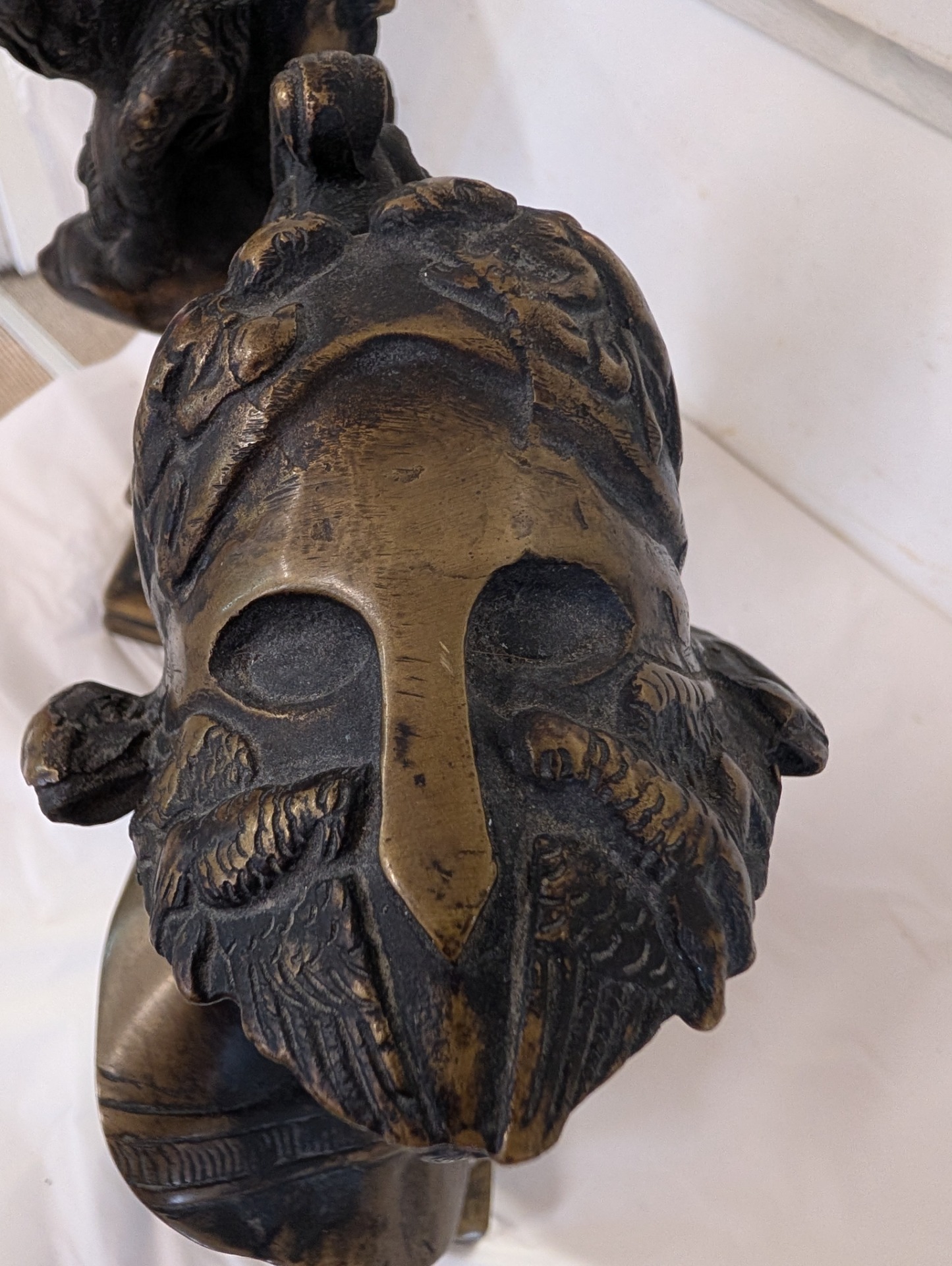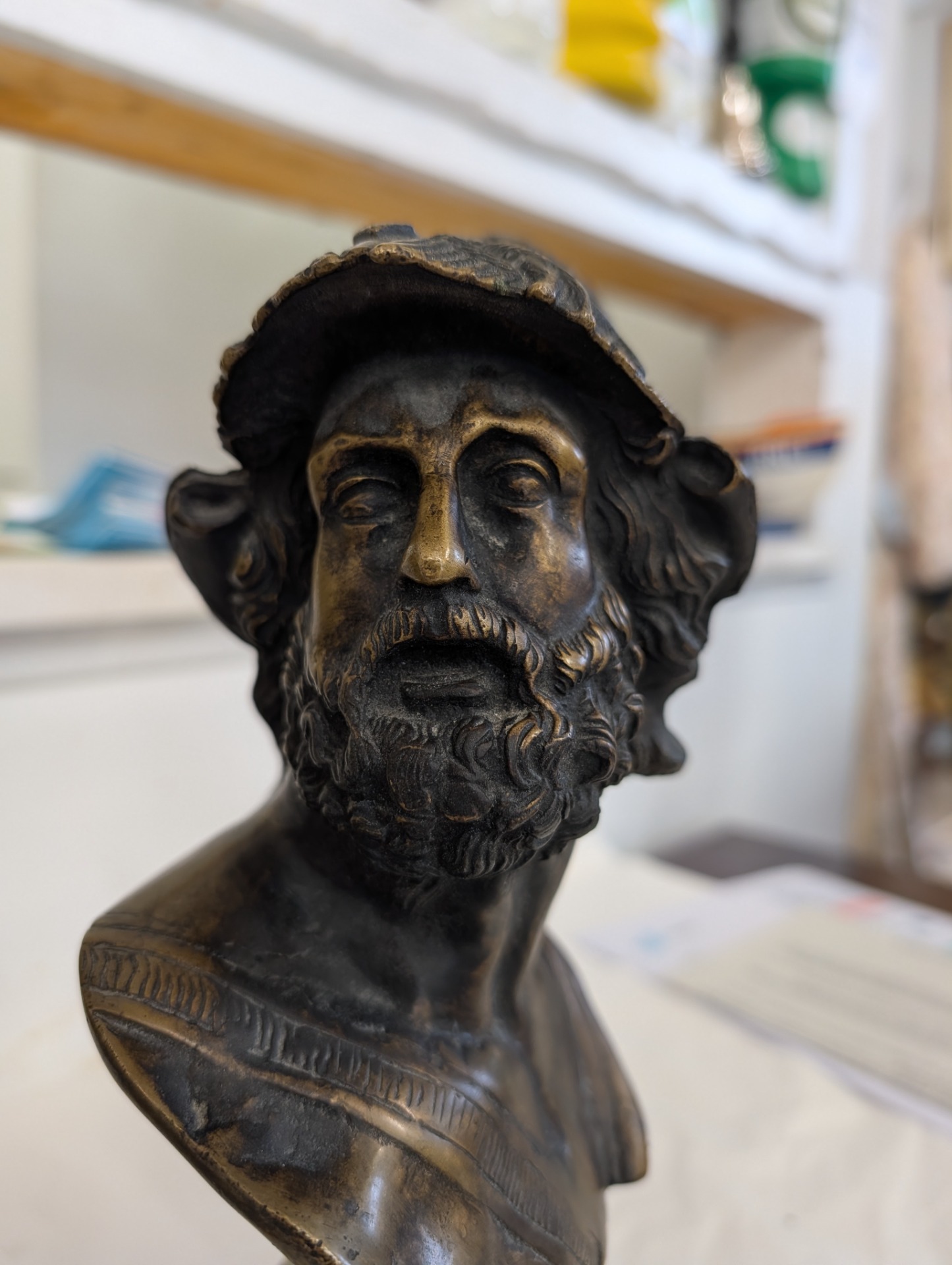 A rare find, a pair of Grand tour Ajax the Great solid cast bronze busts. Possibly French, and dating to the Victorian period these are a fabulous pair, finely detailed and 12" in hight.