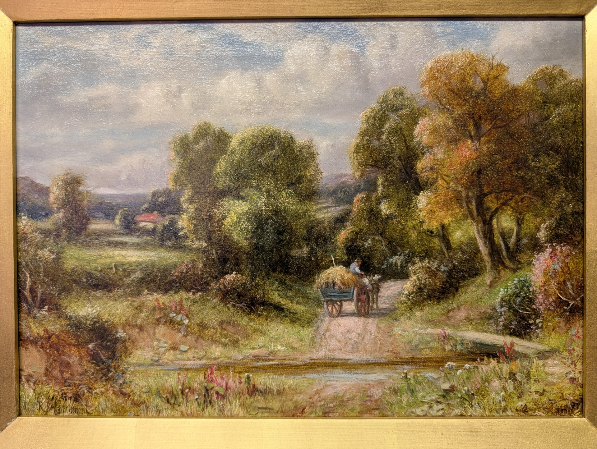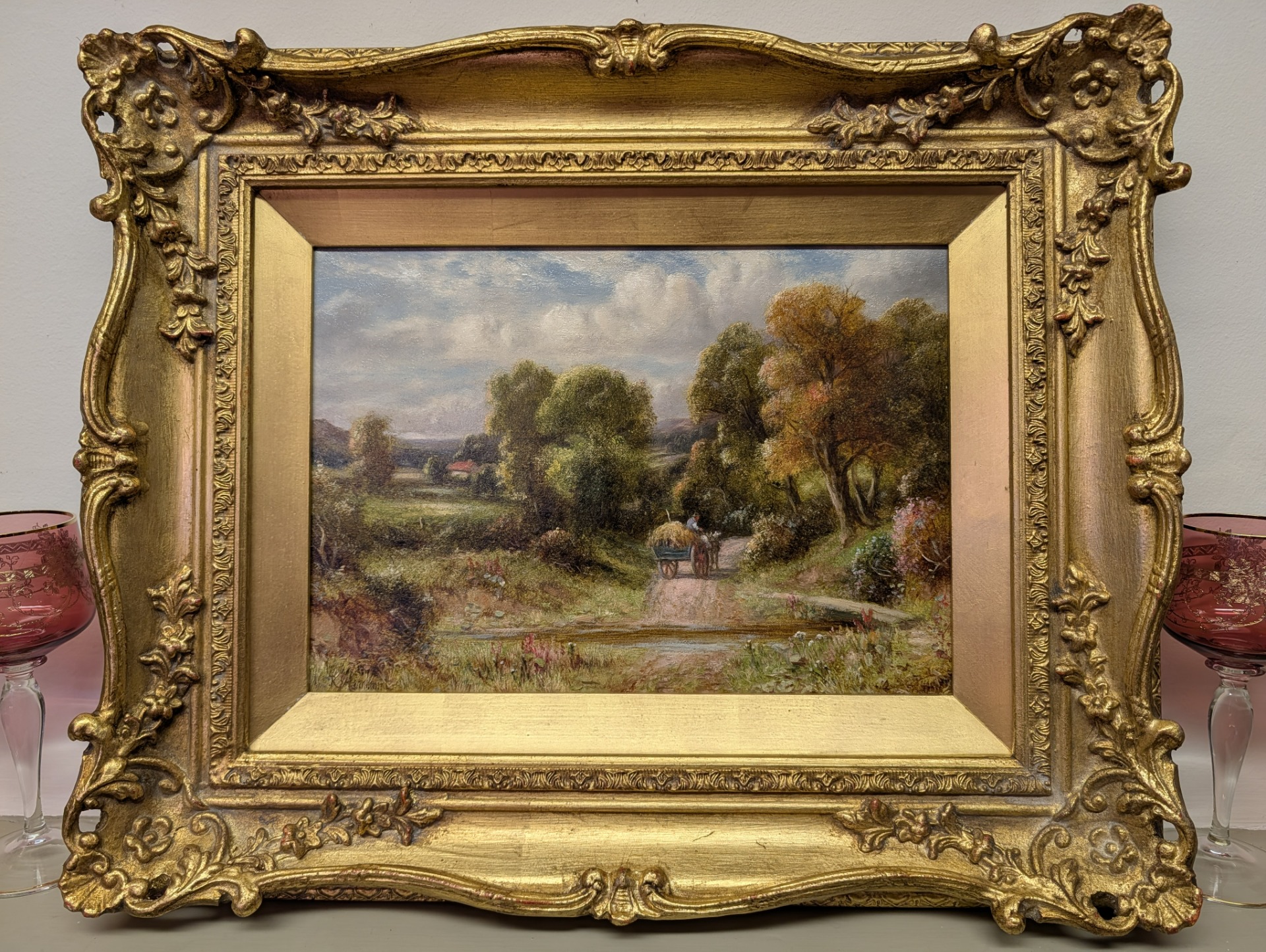 Listed artist R.J Hammond 19th century oil on canvas of a beautiful rural scene, presented in an ornate gilt wood frame.