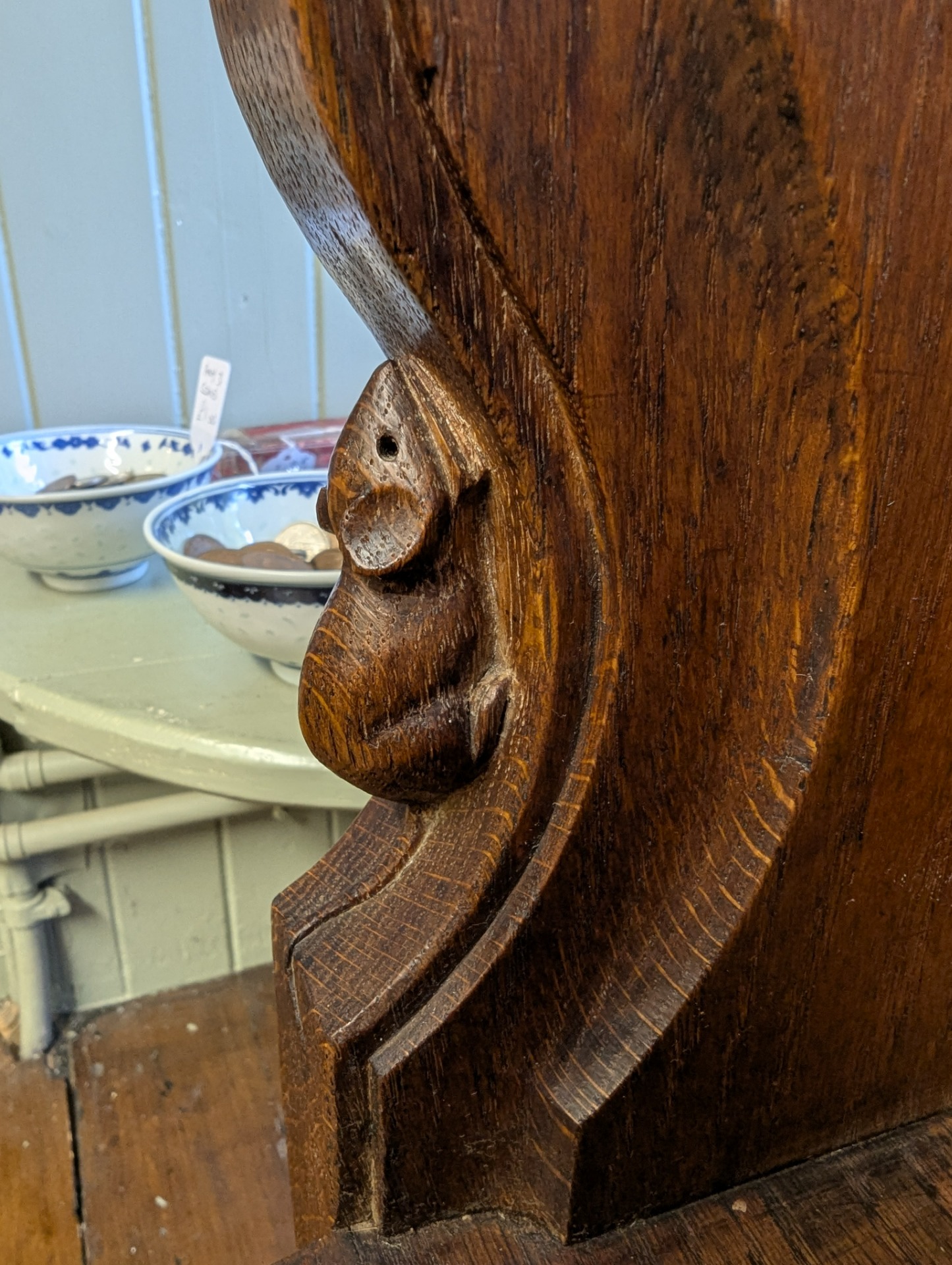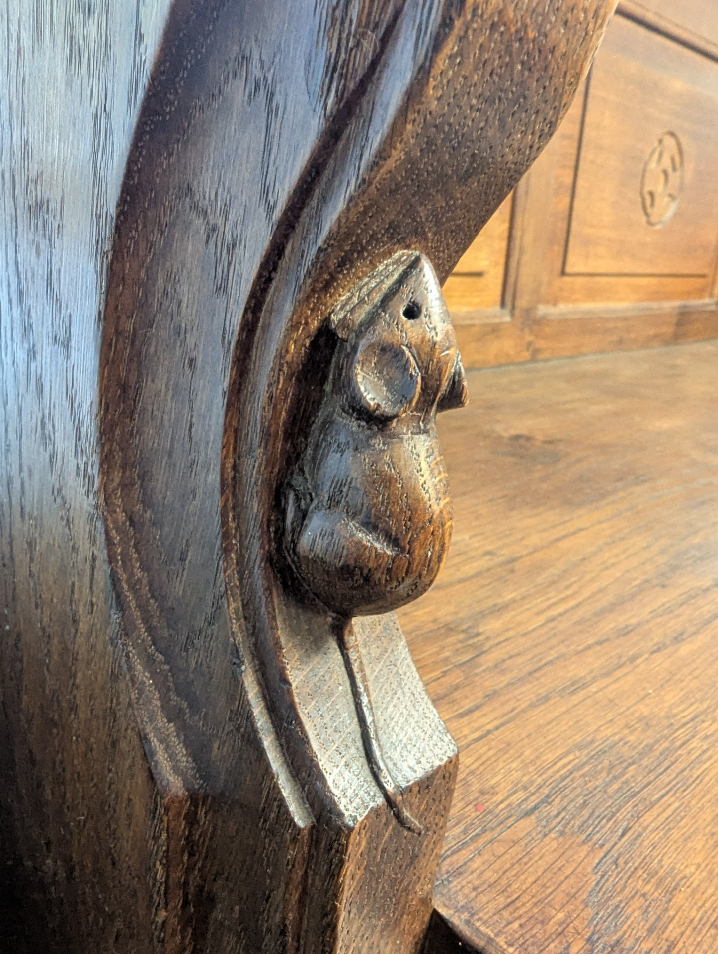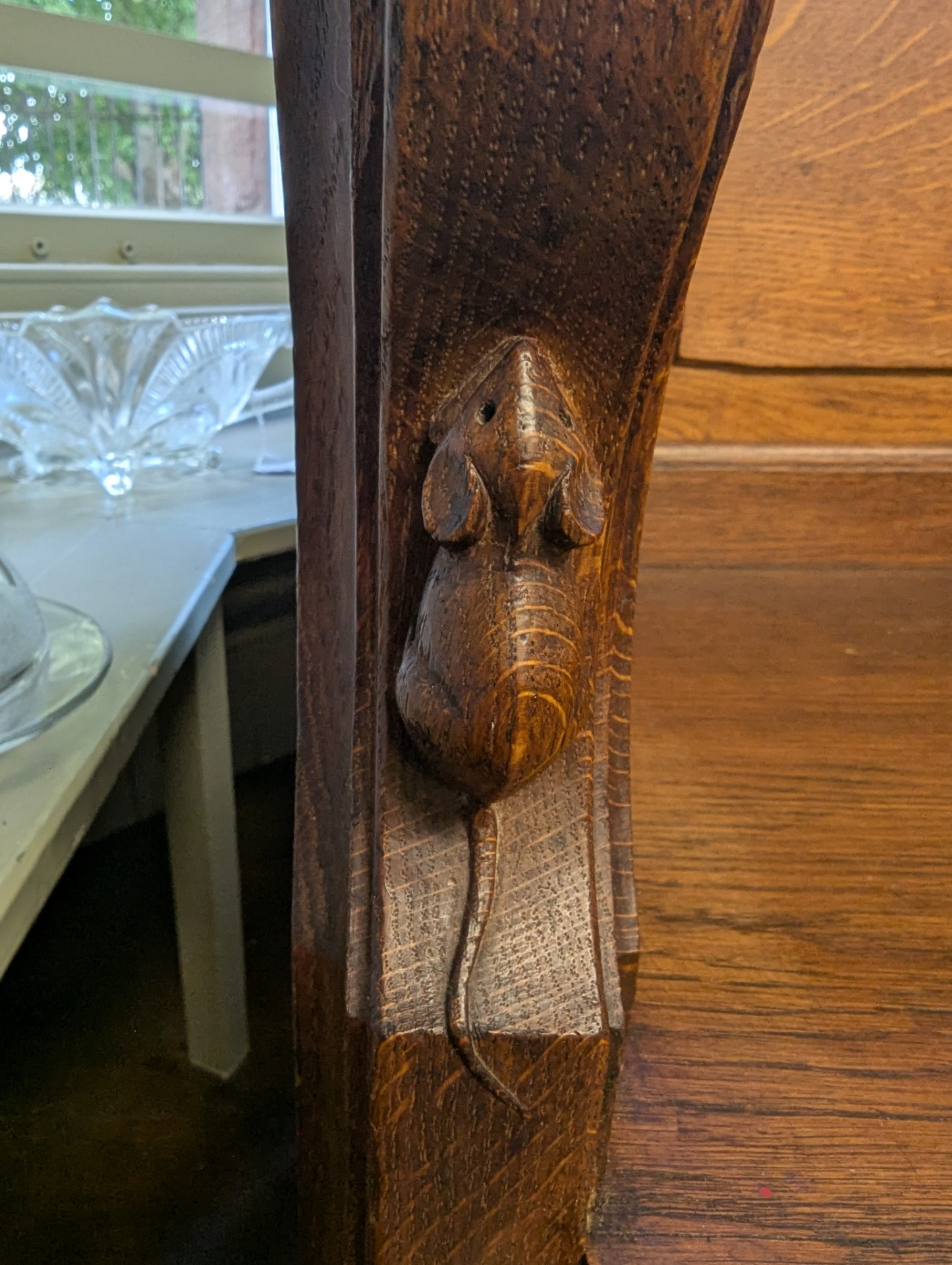 A beautiful Robert "Mousey" Thompson, The Mouseman of Kilburn, Celtic themed Pew or bench, hand made in solid English Oak. Dating to around the 1970, this pew is in excellent condition, and a very rare find. The Pew measures 180cm long x 50cm deep x 93cm high. The seat depth is 41cm and the seat hight is 45cm. Please study the pictures and ask any questions you may have, shipping is available.
