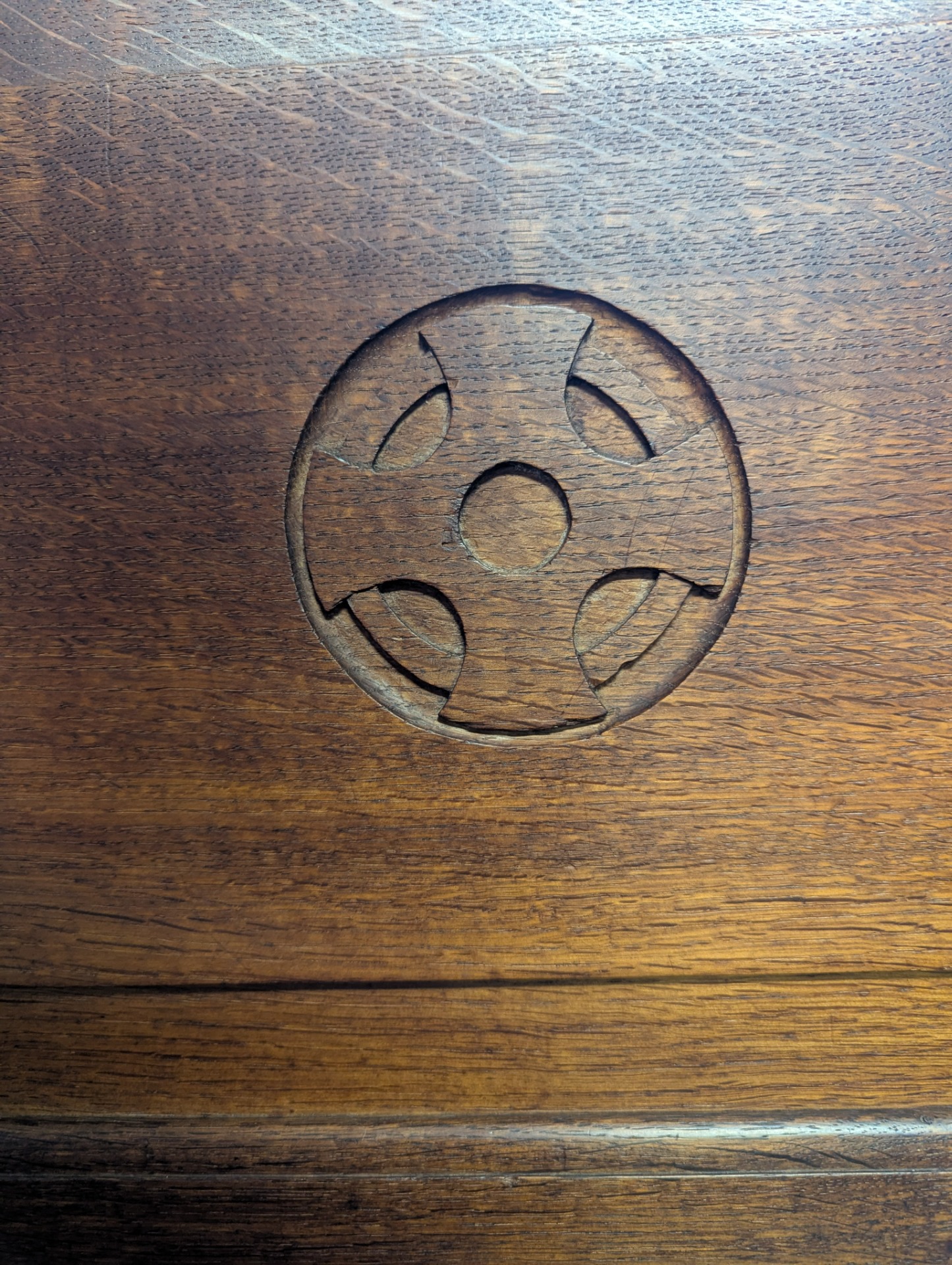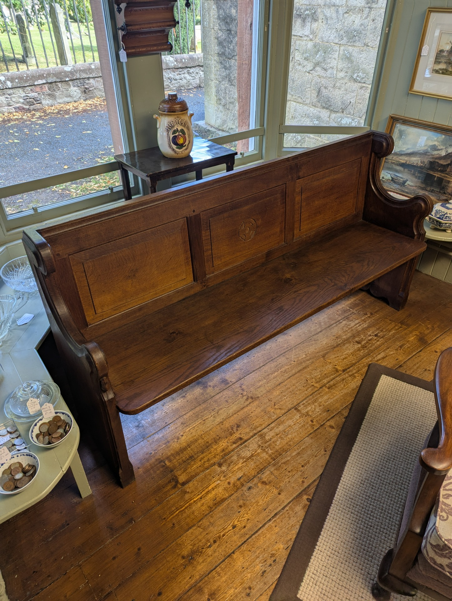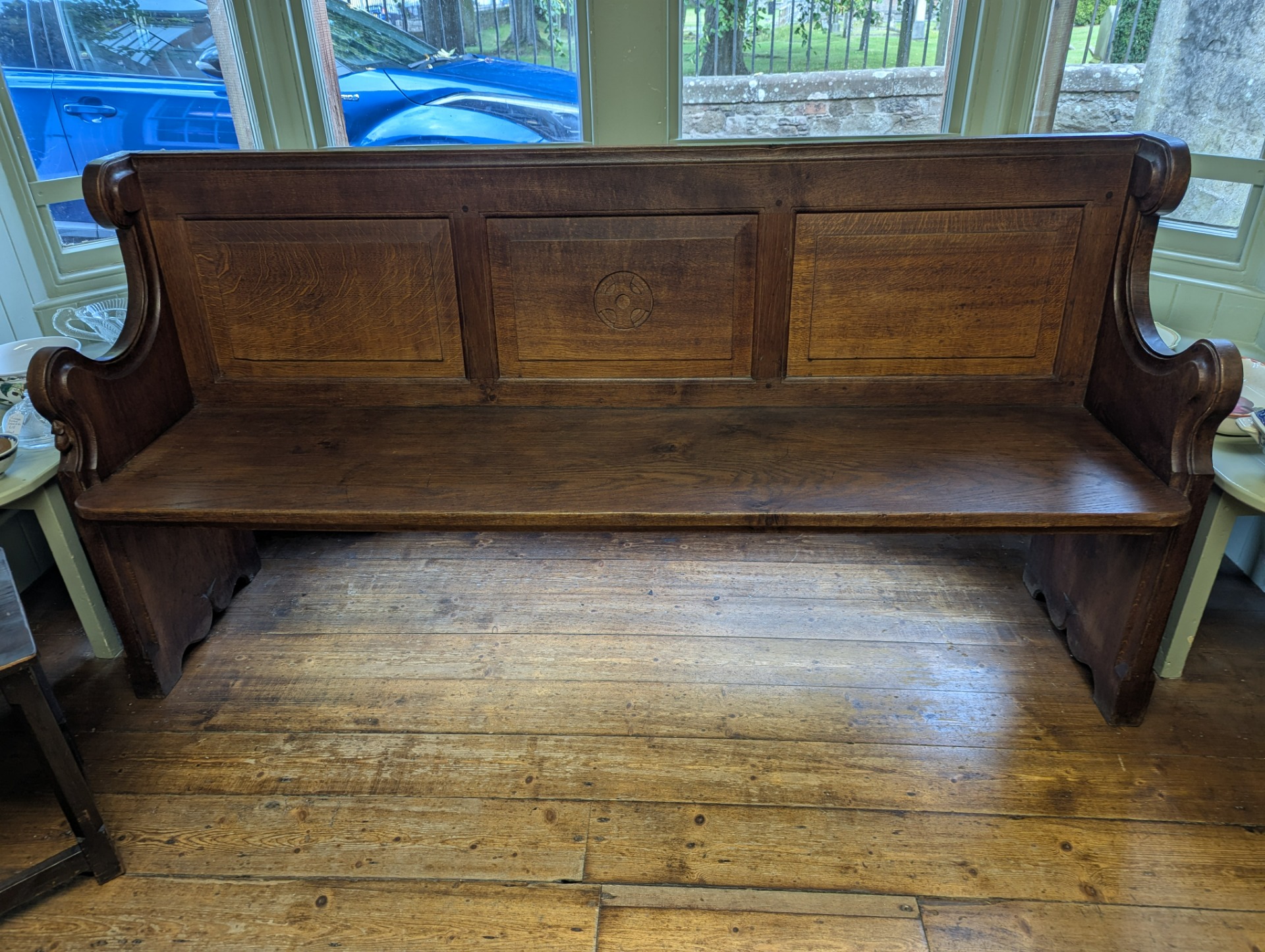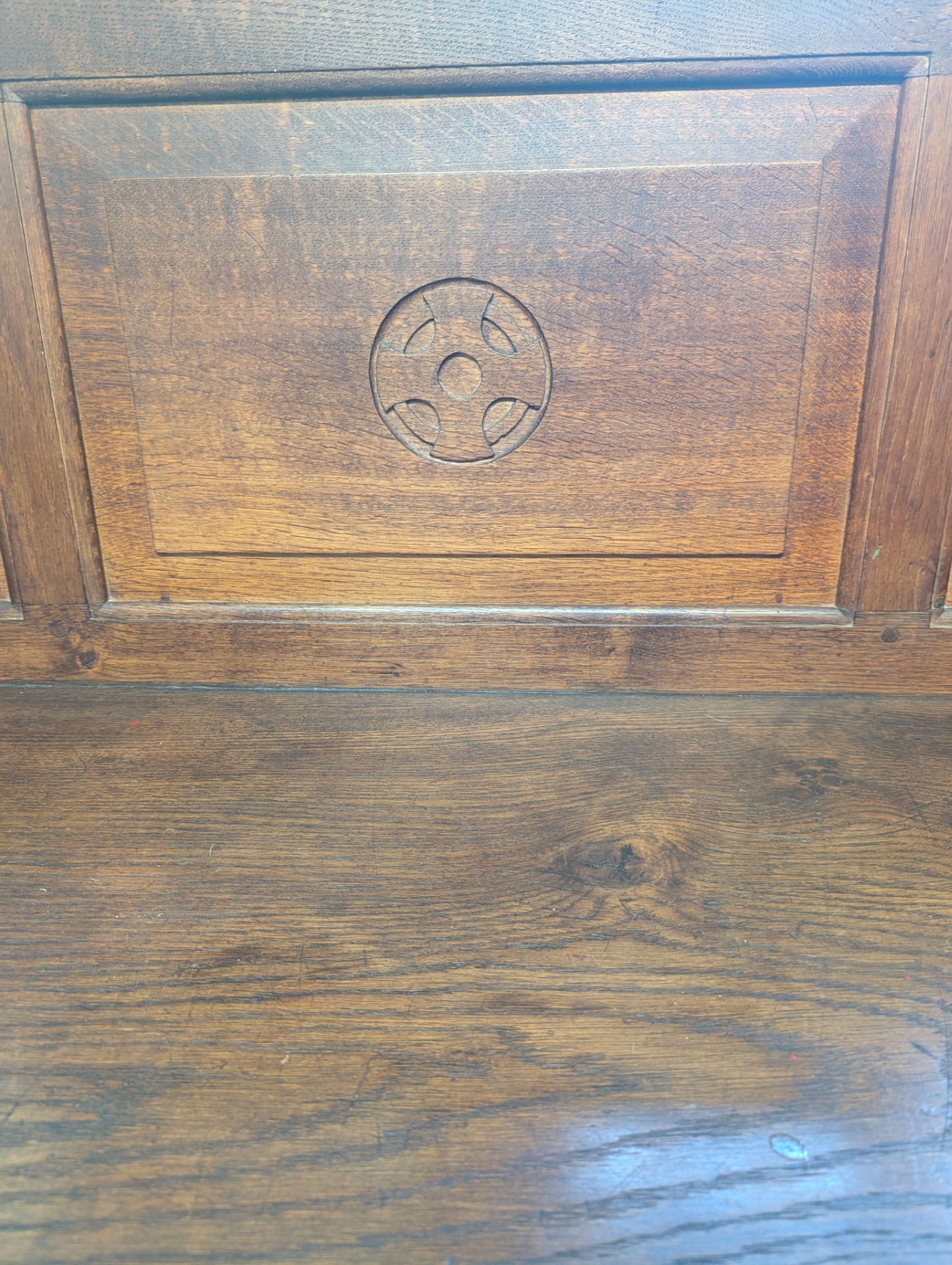 A beautiful Robert "Mousey" Thompson, The Mouseman of Kilburn, Celtic themed Pew or bench, hand made in solid English Oak. Dating to around the 1970, this pew is in excellent condition, and a very rare find. The Pew measures 180cm long x 50cm deep x 93cm high. The seat depth is 41cm and the seat hight is 45cm. Please study the pictures and ask any questions you may have, shipping is available.