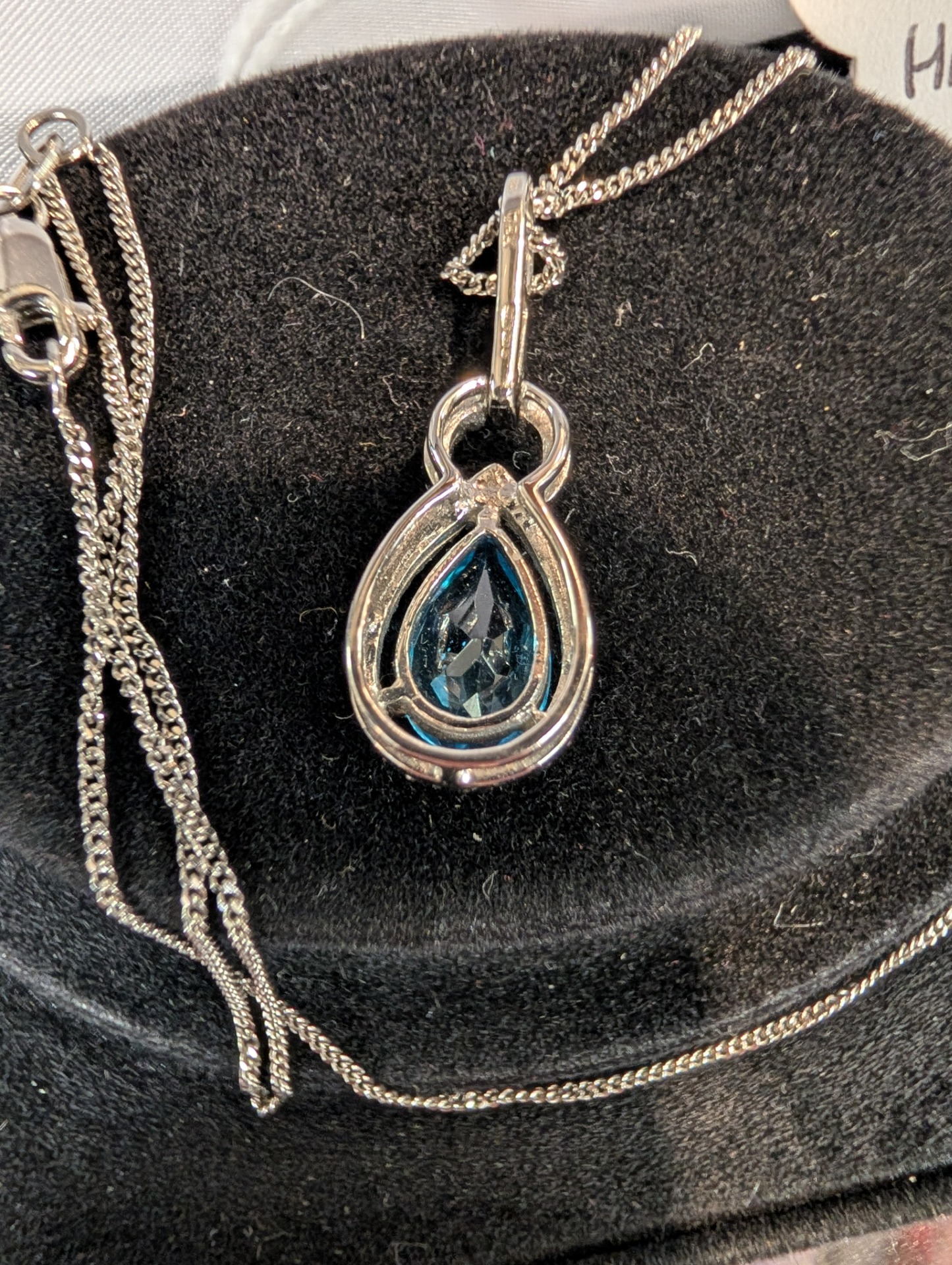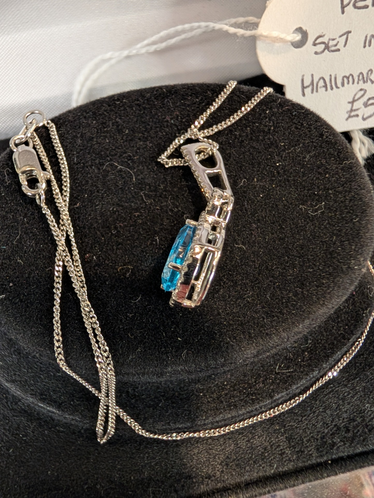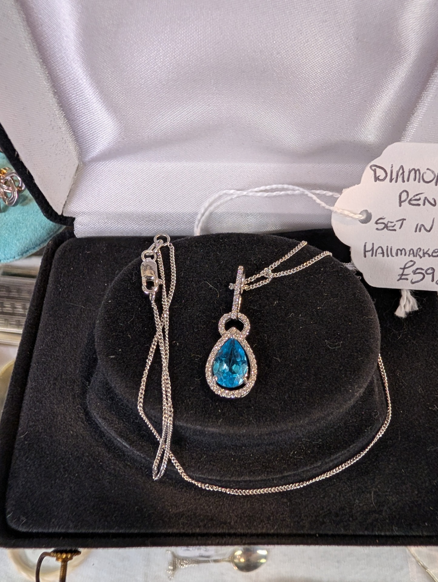 A truly stunning Topaz and Diamond pendant set in 18kt white gold on an 18kt white gold chain, it has to be seen to be truly appreciated!