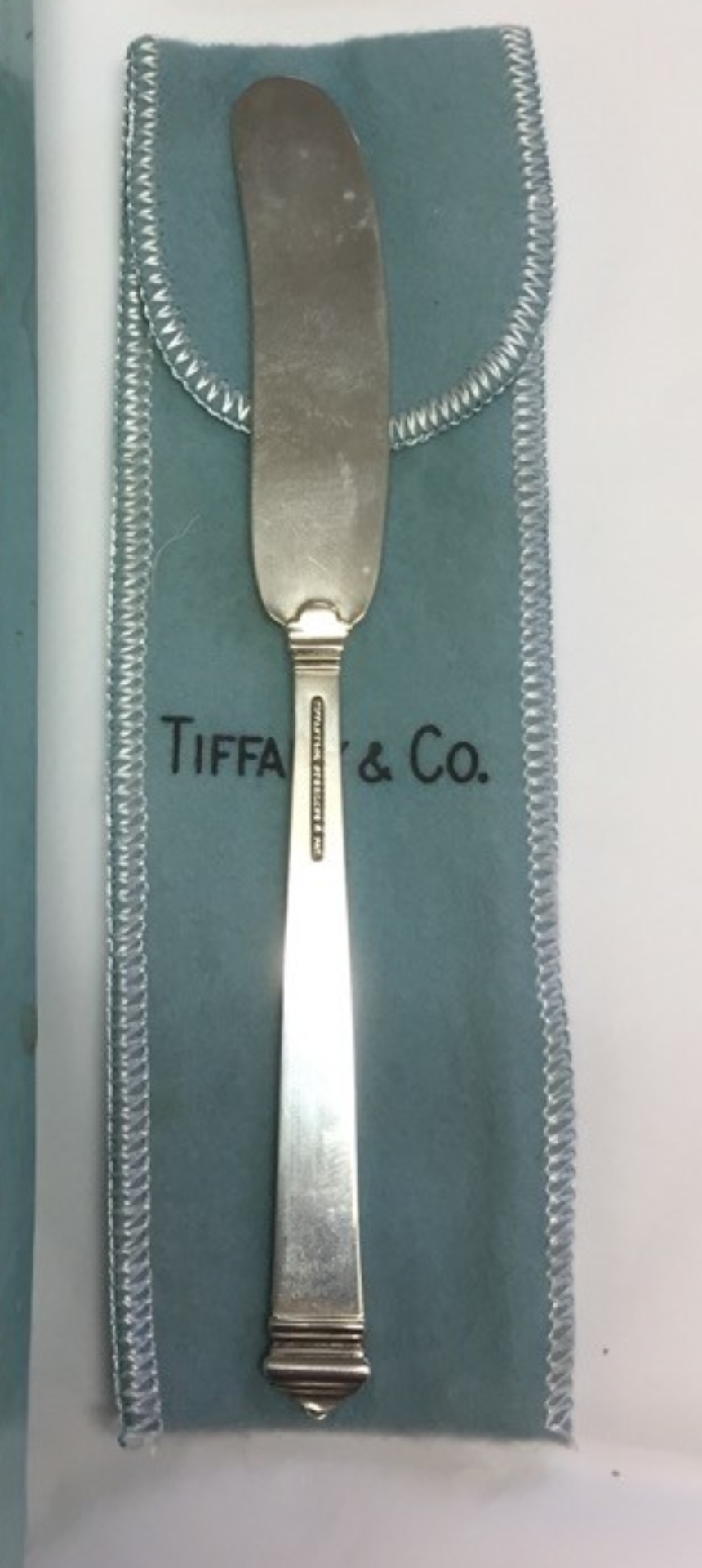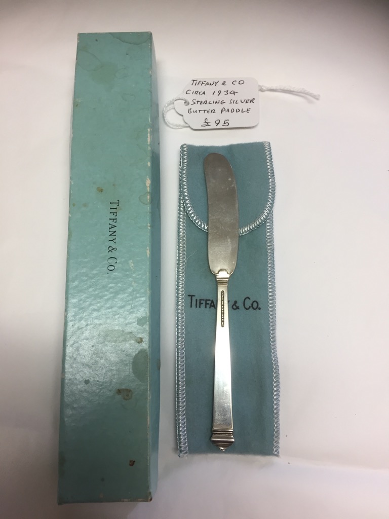 A Tiffany & Co sterling Silver butter paddle circa 1934, in original box and sleeve.